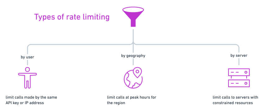 按服务器:如果你有多个服务器处理对API的不同调用,你可能会对访问更昂贵的资源实施更严格的速率限制。