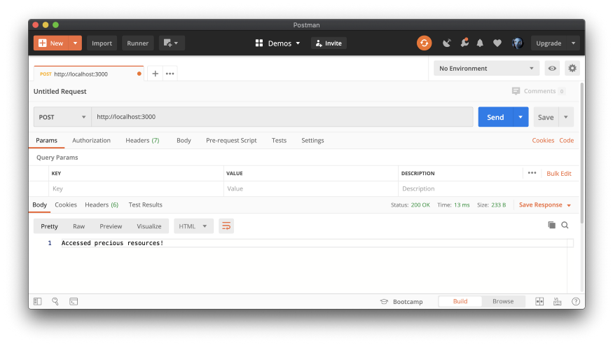 app.post('/', async (req, res) => {async function isOverLimit(ip) {to define}检查率限制let overLimit = await isOverLimit(req.ip)if (overLimit) {res.status(429).send('Too many requests - try again later')return}允许访问资源res.send("Accessed the precious resources!")})