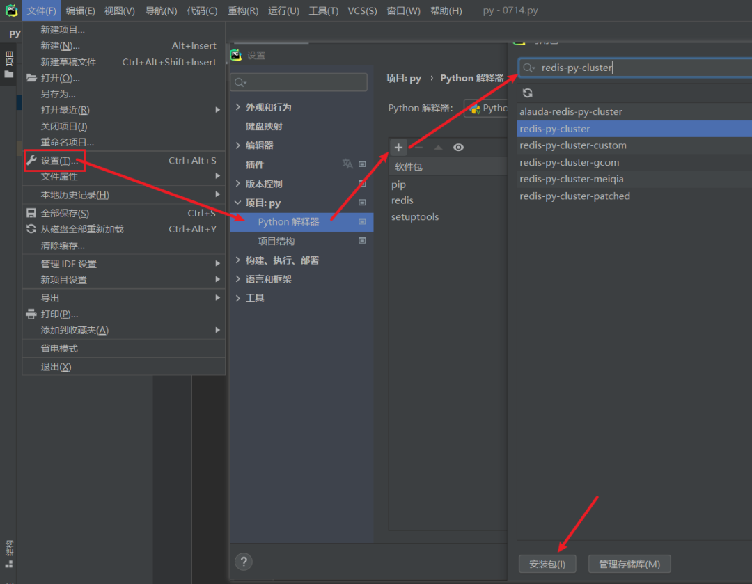 命令安装:pip install redis-py-cluster 或者通过pycharm搜索redis-py-cluster