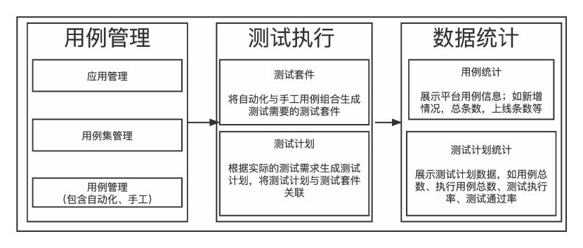 测试管理模块分为用例管理、测试执行、数据统计