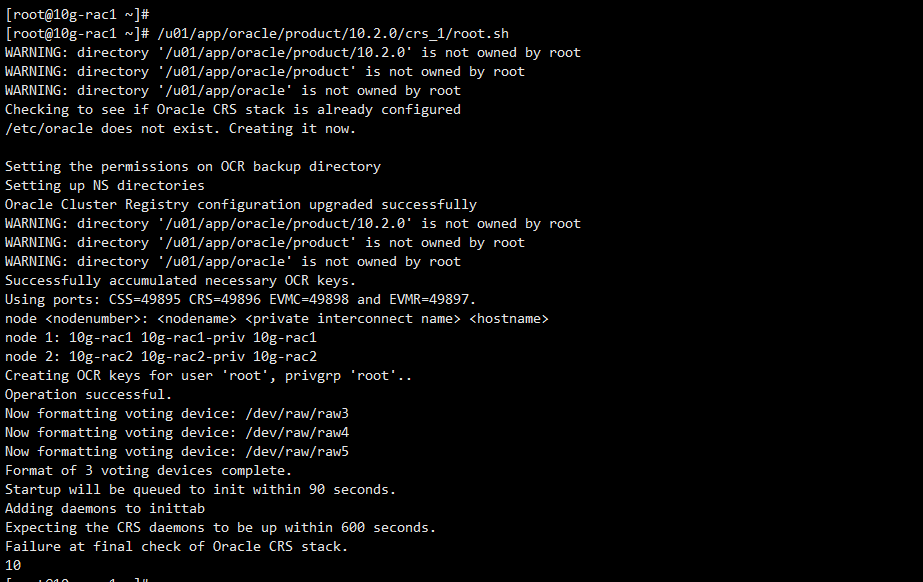 装完了后,要在 /etc/rc.local 中加上上面三个命令,否则,重启主机后不会启动crs。