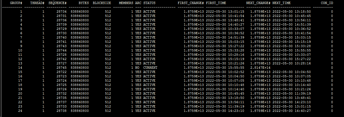 然后你的系统dbwr写的贼慢!!! 当然redo大小不合理也存在这个问题。 例如dbca默认的情况下150M redo就会发送等待,所有redo都是active. 如果10组redo,每组1g size . 那么redo只有写入100G的时候,才可能出现所有redo都是active 状态。