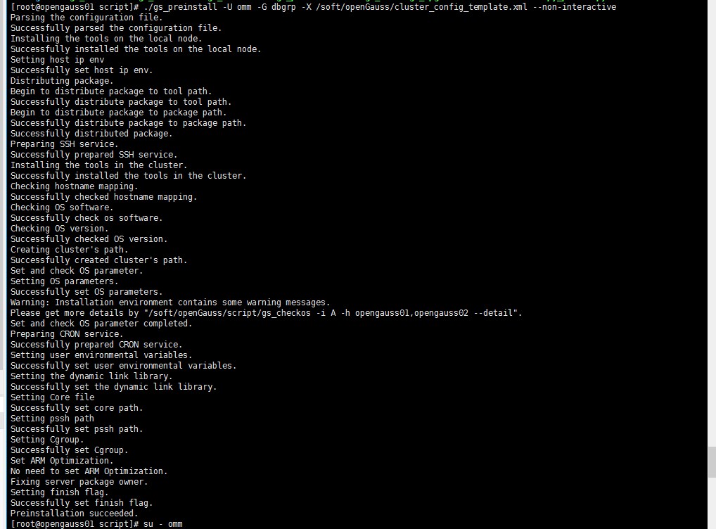 1. 已经完成 gs_preinstall 的检查 。无报错。