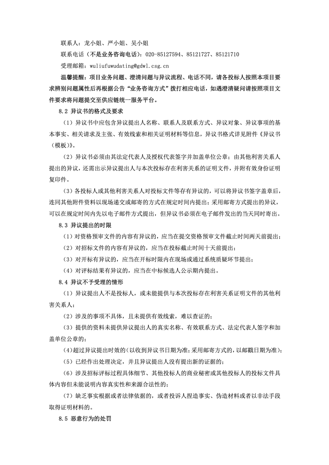 8.1 异议的受理机构及联系方式