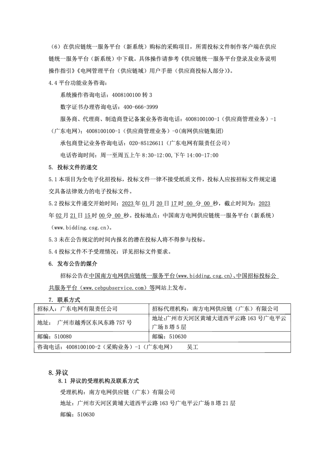 招标人:广东电网有限责任公司 | 招标代理机构:南方电网供应链(广东)有限公司 |