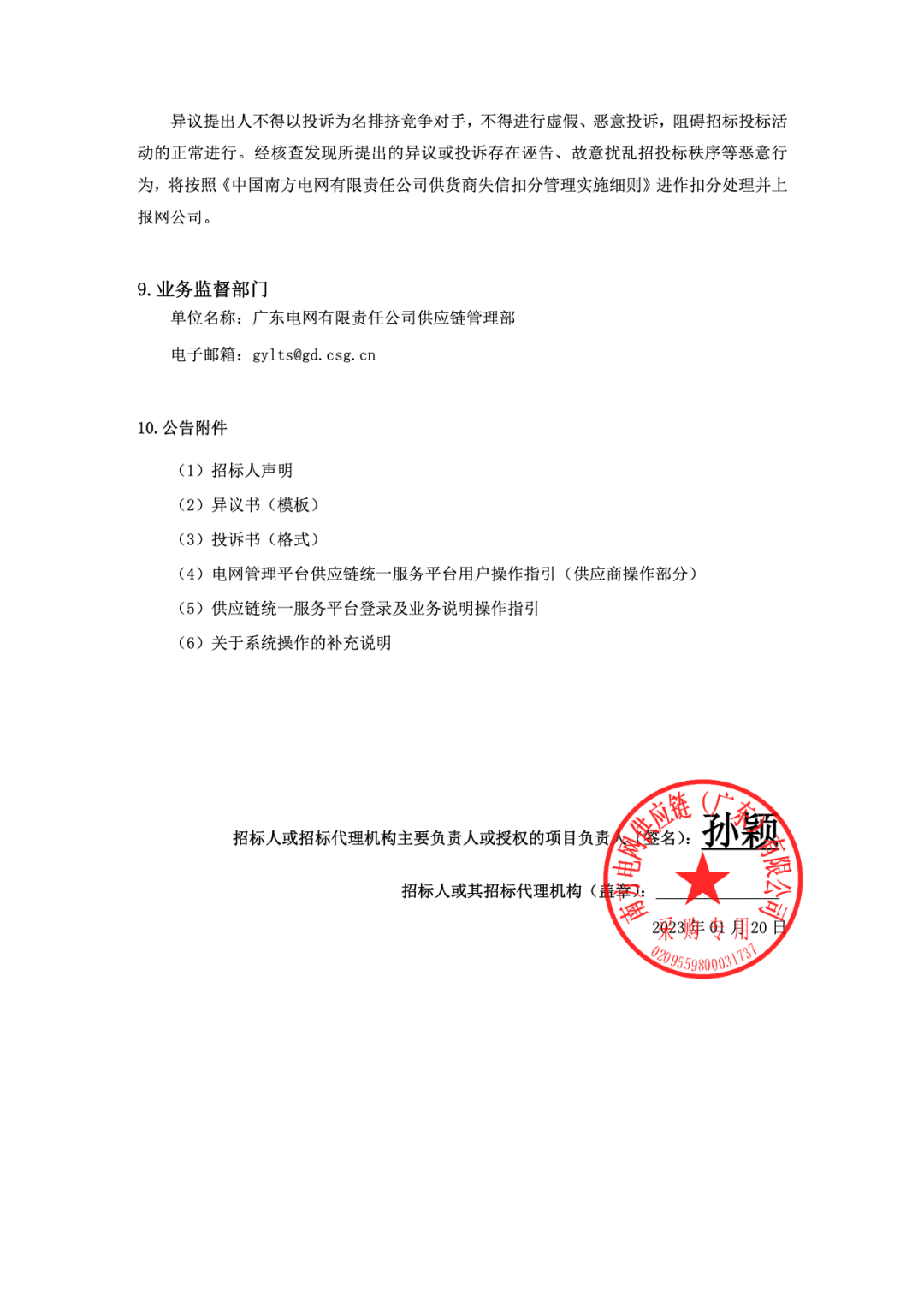 单位名称:广东电网有限责任公司供应链管理部