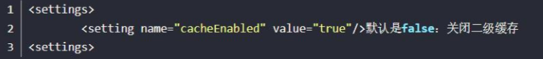 3. 对于缓存数据更新机制,当某一个作用域(一级缓存Session/二级缓存Namespaces) 的进行了C(增加)/U(更新)/D(删除)操作后, 默认该作用域下所有select中的缓存将被clear. 需要在setting 全局参数中配置开启二级缓存,如下conf.xml 配置: