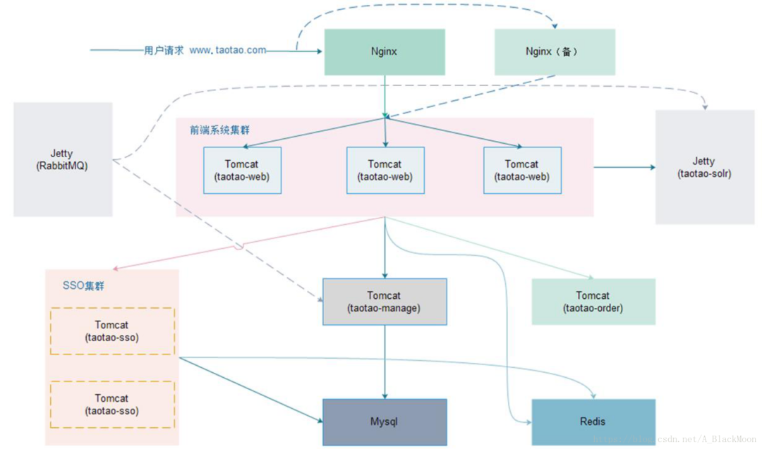 2) 前台系统,主要是面向用户访问,使用Httpclient和后台系统接口做交互,并且该系统在部署上采用集群的方式;
