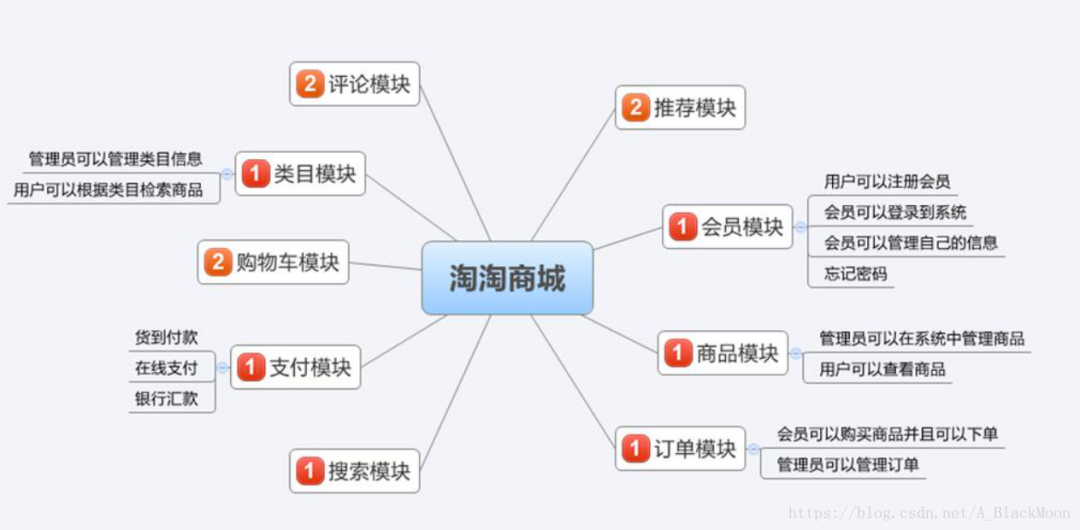1) 后台管理系统,主要实现商品管理、商品规格参数管理、订单管理、会员管理等、CMS(内容管理系统)等,并且提供了跨域支持;