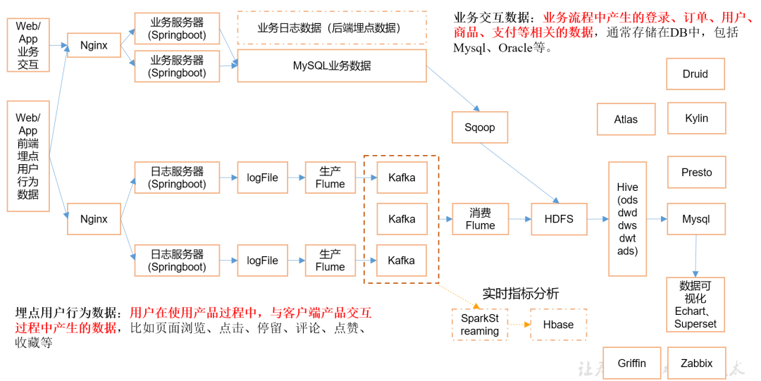 4)分析:用户、流量、会员、商品、销售、地区、活动等电商核心主题,统计的报表指标近100。