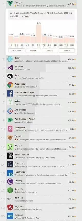2、Vue 在 Github 的欢迎度