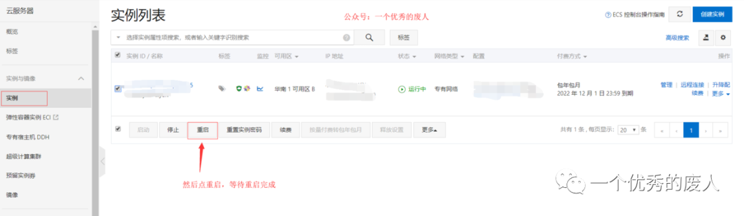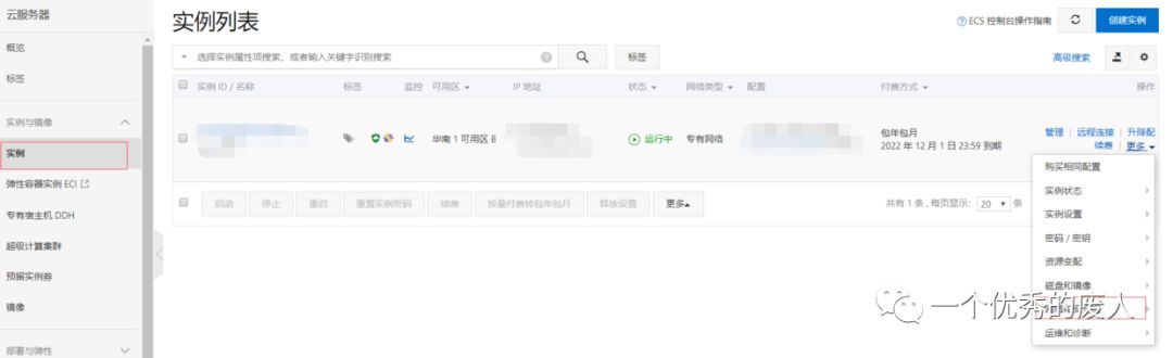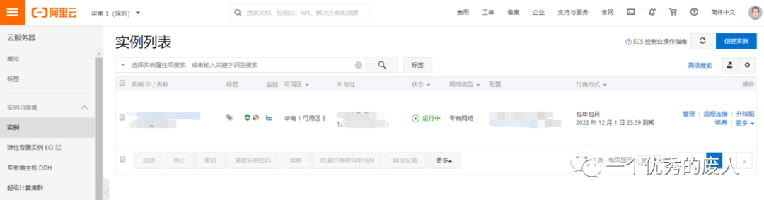 回到控制台就会看到你的在运行实例了,这就是你买的阿里云服务器。