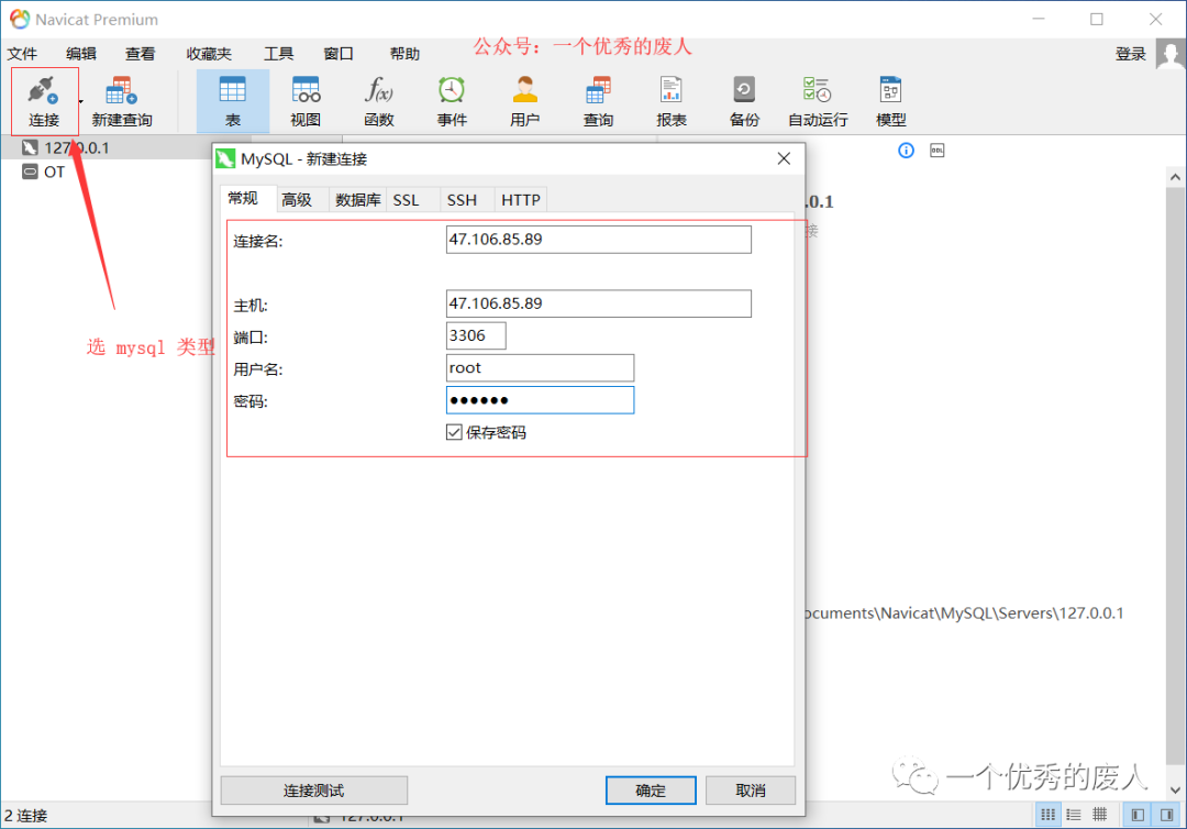 以上教程用到的 Xshell 和 Navicat 工具关注公众号:「一个优秀的废人」回复 「阿里云」直接获取。