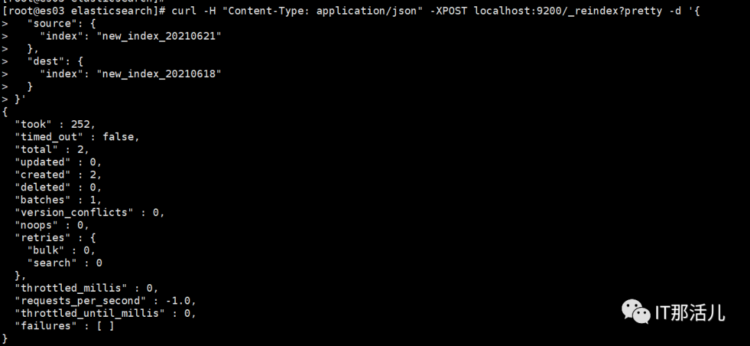 ▼▼▼curl -H"Content-Type: application/json" -XPOST localhost:9200/_reindex -d'{ "source": { "index": "new_index_20210621" }, "dest": { "index": "new_index_20210618" }}'