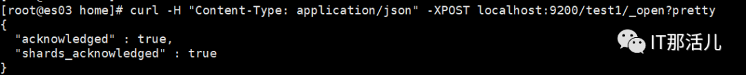 curl -H "Content-Type: application/json" -XPOST localhost:9200/test1/_open?pretty