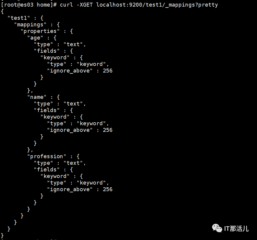 curl -XGET localhost:9200/test1/_mappings?pretty