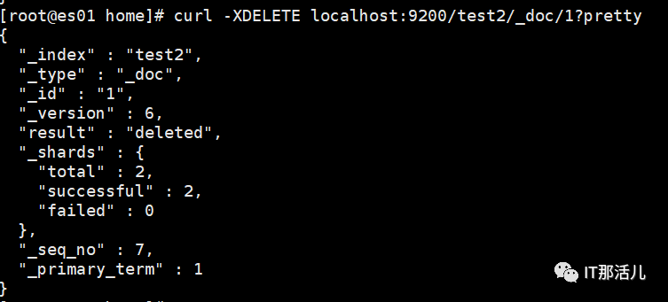 curl -XDELETE localhost:9200/test2/_doc/1?pretty