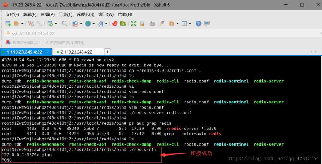 2.10 前端启动的话,如果客户端关闭,redis服务也会停掉,所以需要改成后台启动redis.