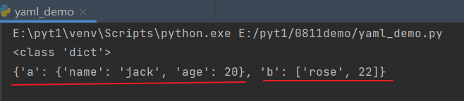 import yaml# 读取yaml文件file = open('./data/dict_data.yaml','r',encoding='utf-8')# 读取yaml格式的数据内容并保存原有的格式data = yaml.load(stream=file,Loader=yaml.FullLoader)print(type(data))# 使用dict读取内容的方法print(data['key'])