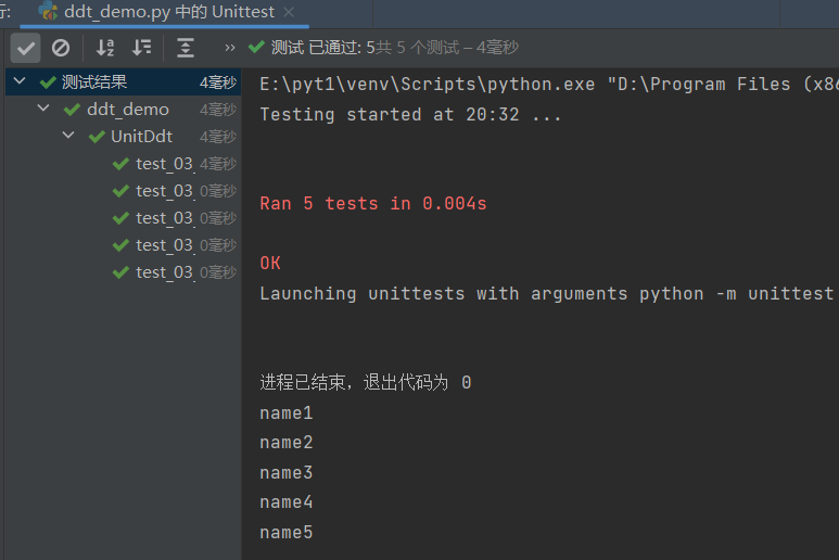 import unittestfrom ddt import ddt, data, unpack,file_data@ddtclass UnitDdt(unittest.TestCase):@file_data('./data/data.yaml')def test_03(self,name):print(name)if __name__ == '__mian__':unittest.main()