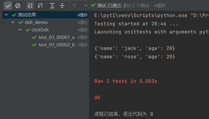 import unittestfrom ddt import ddt, data, unpack,file_data@ddtclass UnitDdt(unittest.TestCase):@file_data('./data/dict_data.yaml')def test_03(self,**kwargs):print(kwargs)if __name__ == '__mian__':unittest.main()