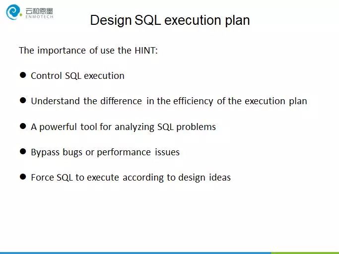 好的性能是设计出来的,因此如果想写出高效的SQL语句,要从一开始就考虑好这个SQL的执行计划,驱动表是谁,采用何种JOIN方式连接到被驱动表。设计思路是一方面,另一方面是保证执行计划符合设计思路,这时候就需要用到提示的功能。熟悉提示的功能,可以更好的控制SQL的执行路径,绕过bug或性能问题,强制SQL按照设计思路去执行。