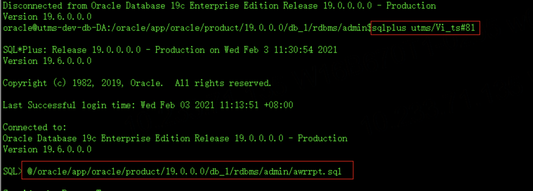 @/oracle/app/oracle/product/19.0.0.0/db_1/rdbms/admin/awrrpt.sql