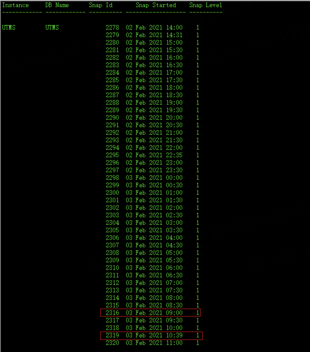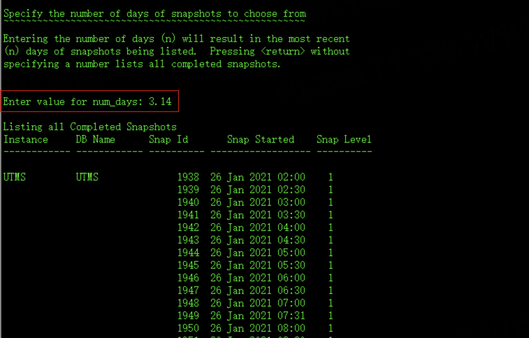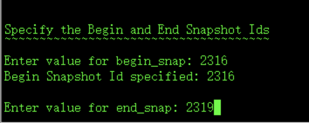 5.输入最小和最大snap id,尽量选择时间范围内的snap id