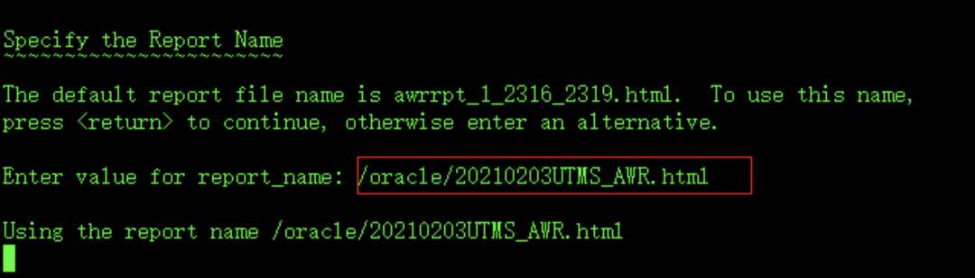 6.输入生成Oracle AWR (性能分析)报告的名称及路径