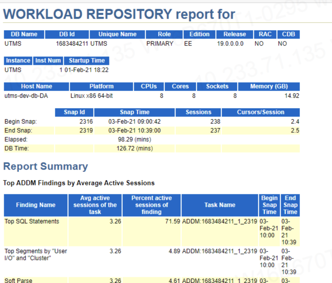 awr报告是oracle 10g及以上版本提供的一种性能收集和分析工具,它能提供一个时间段内整个系统资源使用情况的报告,通过这个报告,我们就可以了解Oracle数据库的整个运行情况,比如硬解释的比例,Catch命中率等,这就像一个人全面的体检报告。