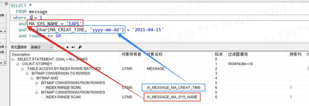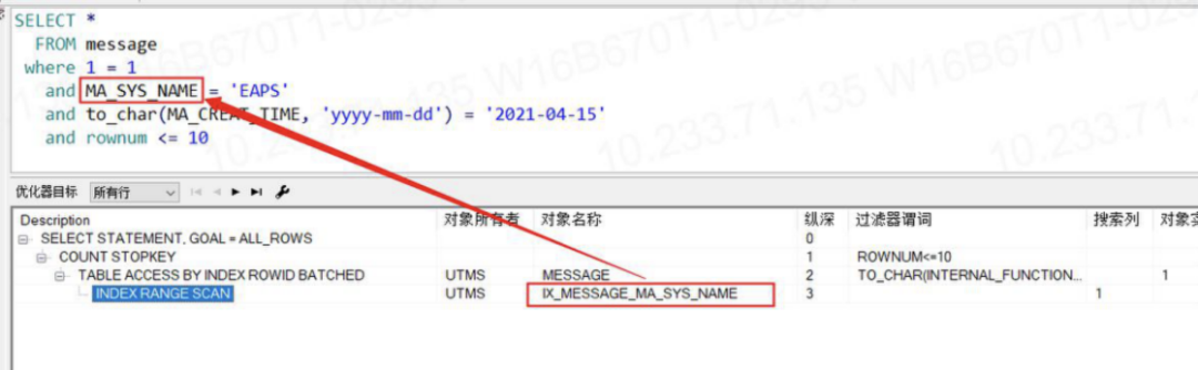 4.但是再次查询时发现,查询依旧很慢,通过查看Oracle解释计划,发现日期索引没有使用。