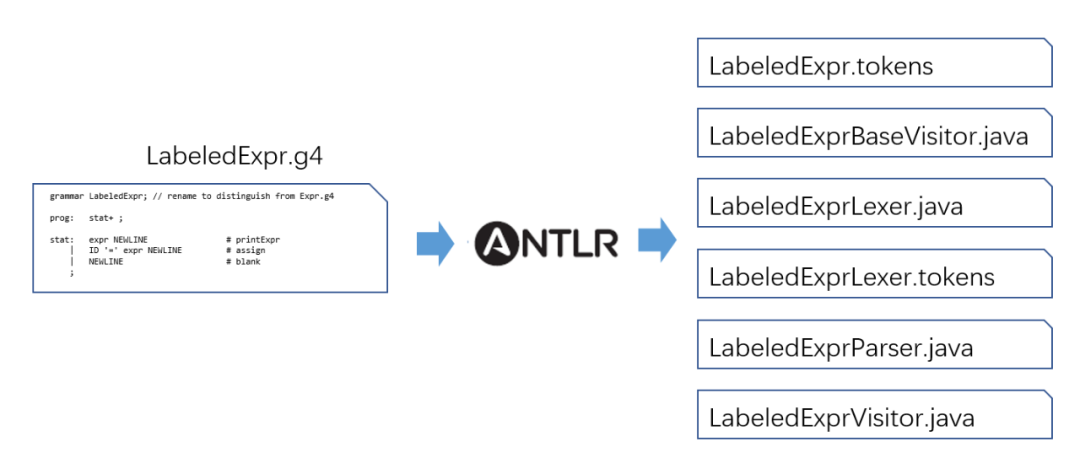antlr4 -package org.example.calc -no-listener -visitor .\LabeledExpr.g4