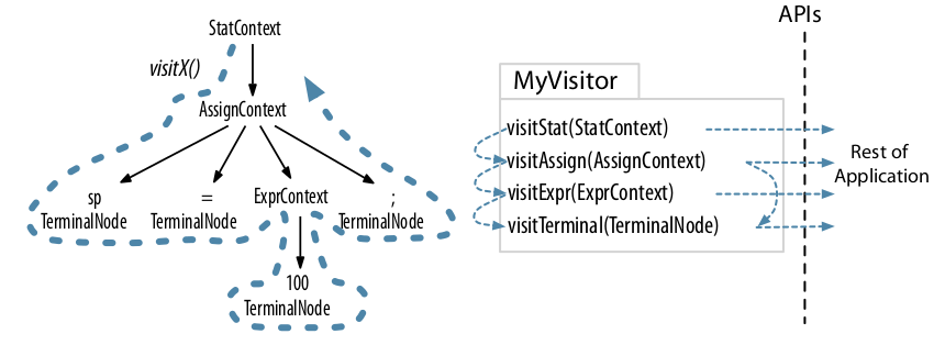 关于Listener模式和Visitor模式的区别,《The Definitive ANTLR 4 Reference》一书中有清晰的解释: