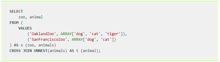 例如,使用unnest语法解析复杂类型的数据,SQL如下: