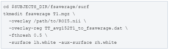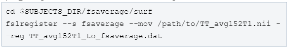 2)将ROI配准到freesurfer的模板上,推荐fsaverage。可以使用自动配准如fslregister或spmregister,或者手动配准如tkregister。其中Freesurfer提供的fslregister和spmregister分别使用的是FSL的flirt和SPM的spm_coreg,命令是一样的,这里使用了fslregister。