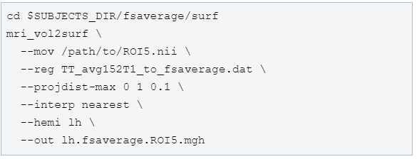 同样可以做个图看看变换的结果lh.fsaverage.ROI5.mgh是不是在想要的位置。