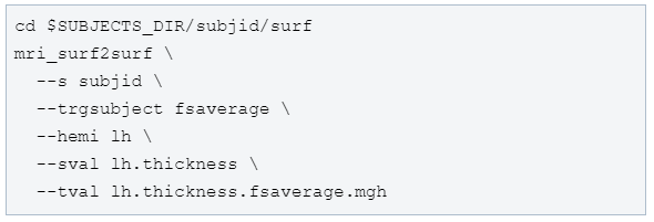 4)将个体空间的数据配到fsaverage标准空间中得到lh.thickness.fsaverage.mgh