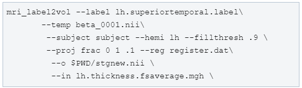 之后用mri_label2vol将其转到volume空间中,这里用到了之前得到的变换矩阵。