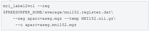 将DK模板转到MNI152空间,这里使用了Freesurfer自带的mni152的变换矩阵,因此不需要做配准。如果需要提取的数据在其他的空间,参见上面的tkregister2或者其他方式做配准获取相应的变换矩阵。