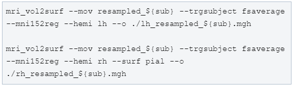 除了把ROI变换到数据空间,然后提取数据。是否可以把数据变换到ROI所在空间,进行提取呢?尝试了一下将MIN152空间的group level的数据变换到fsaverage空间,用的命令同样是mri_vol2surf。过程中如果出现voxel size的warnning可用3dresample可以解决。
