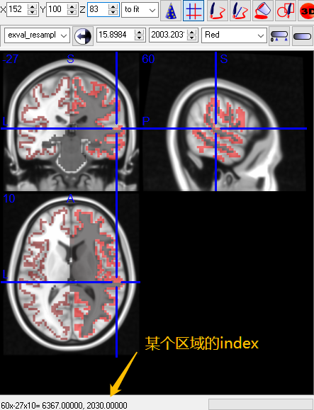 结果保存在txt中,1为ROI的皮层厚度2.3747。