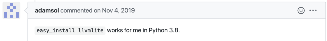 pip安装总是出现python setup_tools的相关错误,过程中发现llvmite这个包需要cmake。用brew安装了cmake,结果还是不行。最后在github一个角落发现可以使用easy_install的命令轻松解决其不能在python3.8上安装的问题,果断试了试(自己用的conda环境python3.5),问题解决。原理不得而知,pip不行,easy_install就可以。