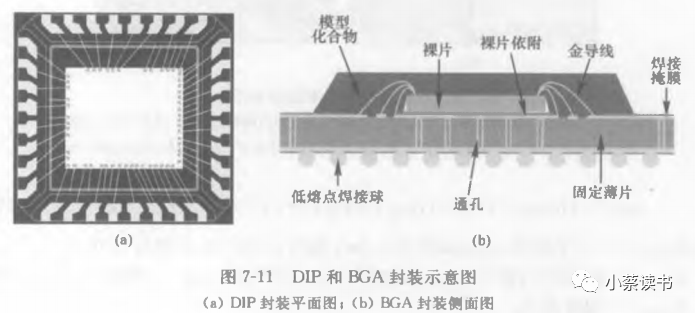 封装电感对电压降的影响,如下图所示的两种封装形式,其中图(a)为DIP(dual in-line)封装,图(b)为BGA(ball grid array)封装,前者的封装电感为1-2nH,而后者的封装电感为0.1-0.2nH.
