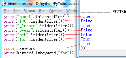 但是,我们可以借助另外一个函数 keyword.iskeyword() 来判断一个标识符是不是关键字,使用这两个函数就可以完全来检验自己定义的标识符是不是有效的了。