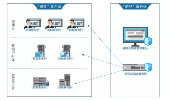 美创通过对大量勒索病毒的分析,基于零信任、守白知黑原则,创造性的研究出针对勒索病毒的终端产品【诺亚防勒索系统】。诺亚防勒索在不关心漏洞传播方式的情况下,可防护任何已知或未知的勒索病毒。