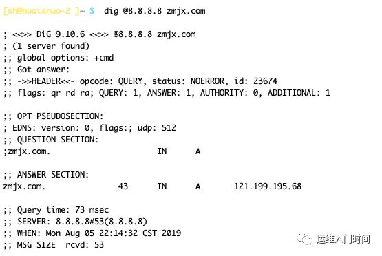 dig @8.8.8.8 zmjx.com