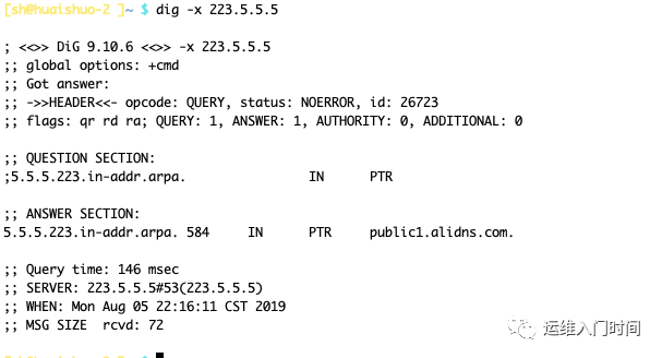 dig -x 223.5.5.5
