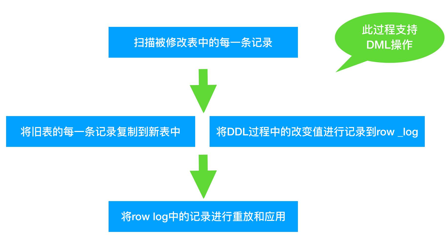 那么我们下面重点看看INPLACE方式吧,INPLACE方式,实质也是采取拷贝线上数据的方法,但是在拷贝线上数据的同时会将线上数据的变化进行记录,之后将记录在新表上进行重放即可。