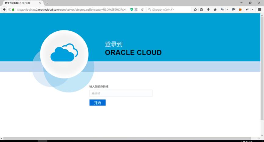 身份域就是指Identity Domain的内容,输入身份域点击开始,就会要求输入用户名和密码,也就是邮件中提供的用户名和临时口令,登录后,系统会要求更改初始口令(此处忘记截图,无关紧要)。