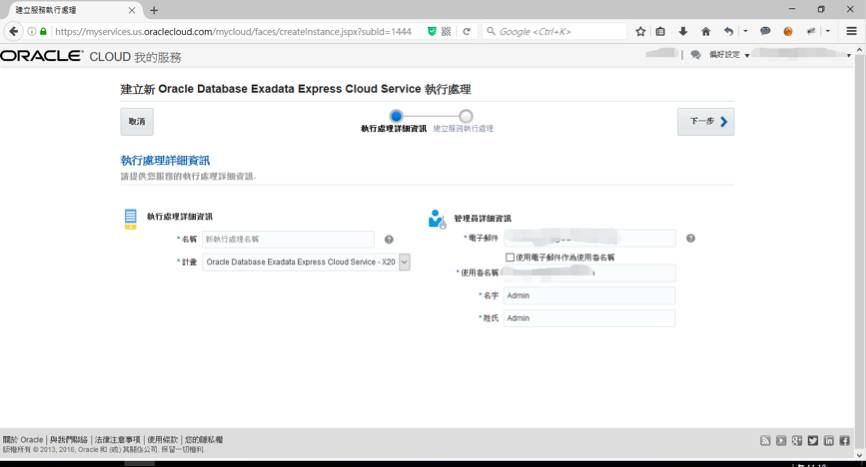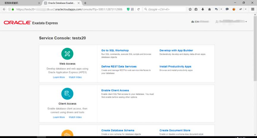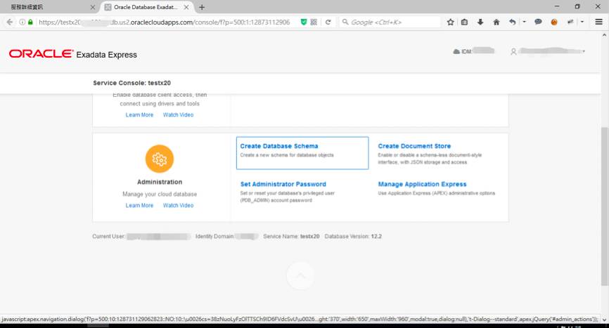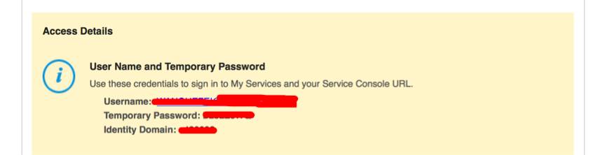 首先需要输入身份域,当订购Exadata Express Cloud Service服务后,Oracle就会在邮件里提供给你如下内容: